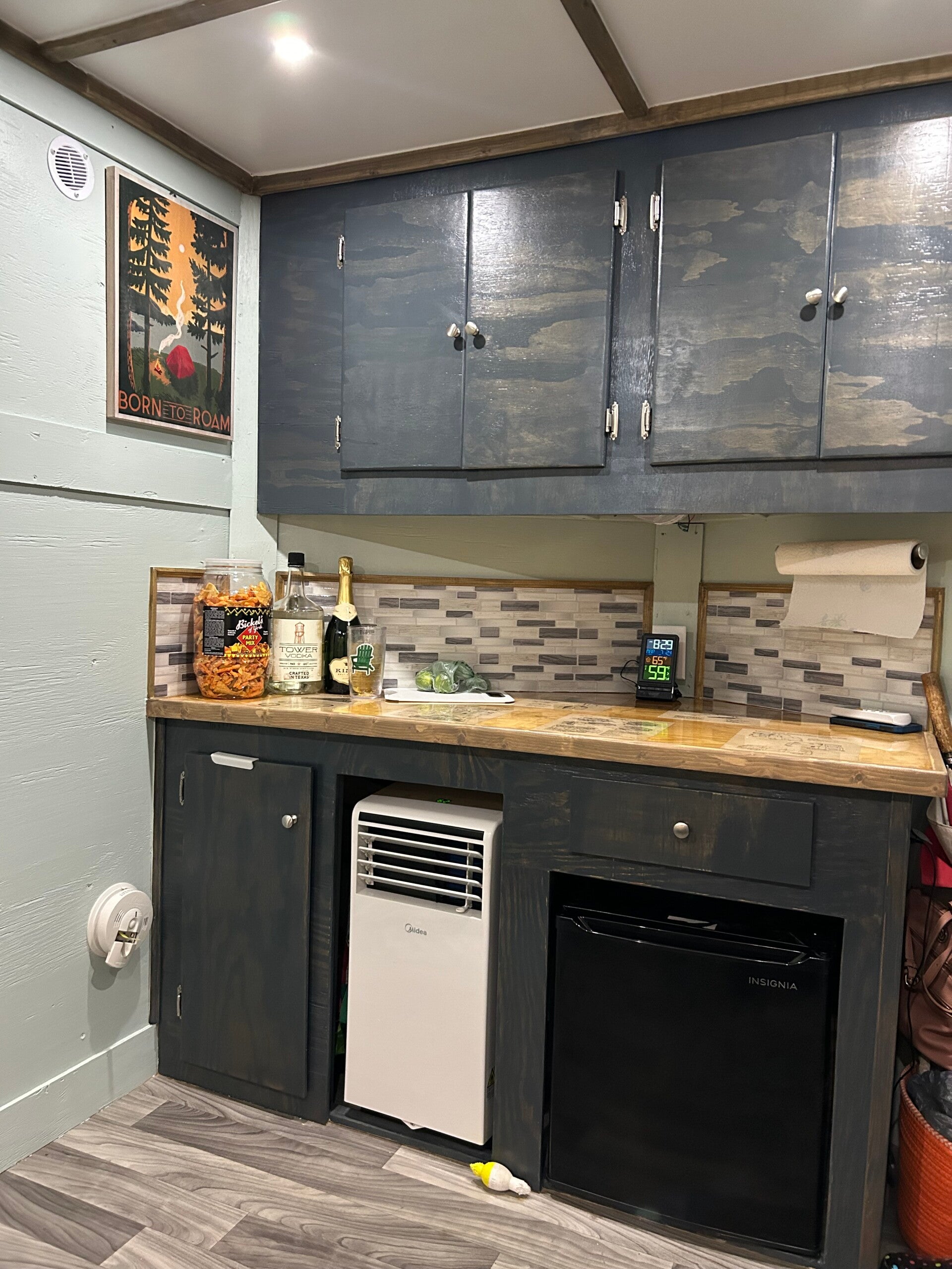Tim did a ton of research before we started. One YouTube channel that was especially helpful was I Ride Tiny Home Adventures with Bill and Deb. Their walkthroughs inspired our layout and gave us great ideas.